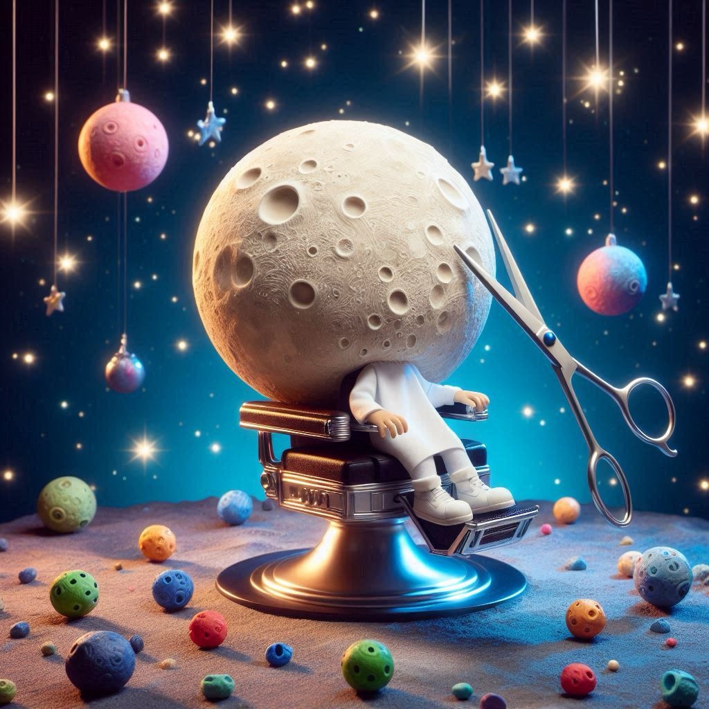 How does the moon cut his hair?